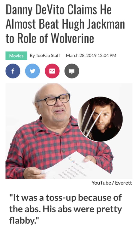 I love Danny DeVito so much!!! And yes I’d totally watch all the x-men movies with him as wolverine